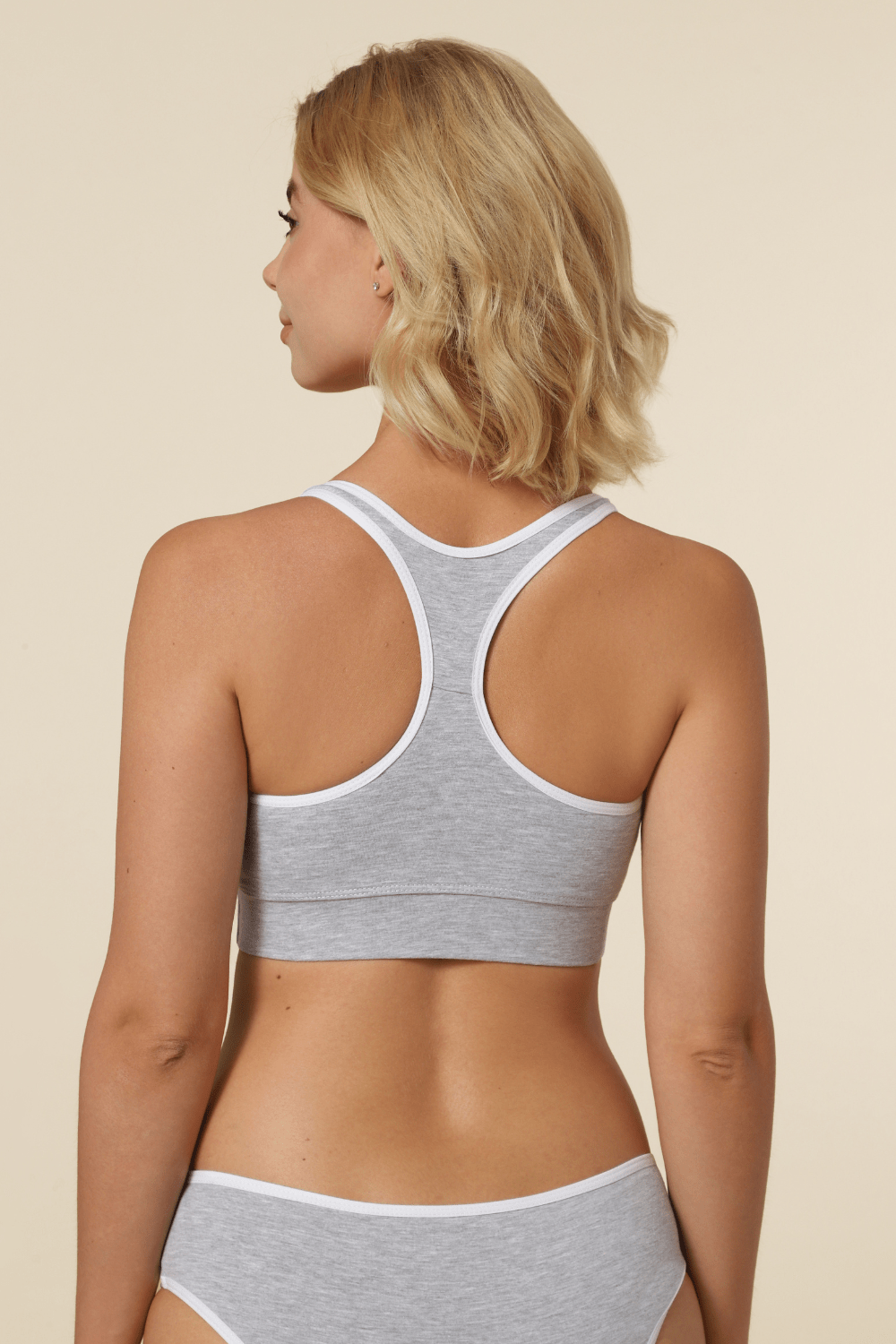 Бюстгальтер-топ виконаний з еластичного бавовняного трикотажу, добре підтримує груди під час вагітності. Завдяки спеціальній конструкції і застібки на бретелях, може бути використаний в післяпологовий період для годування. М'які бретелі знімають тиск з області плечей.