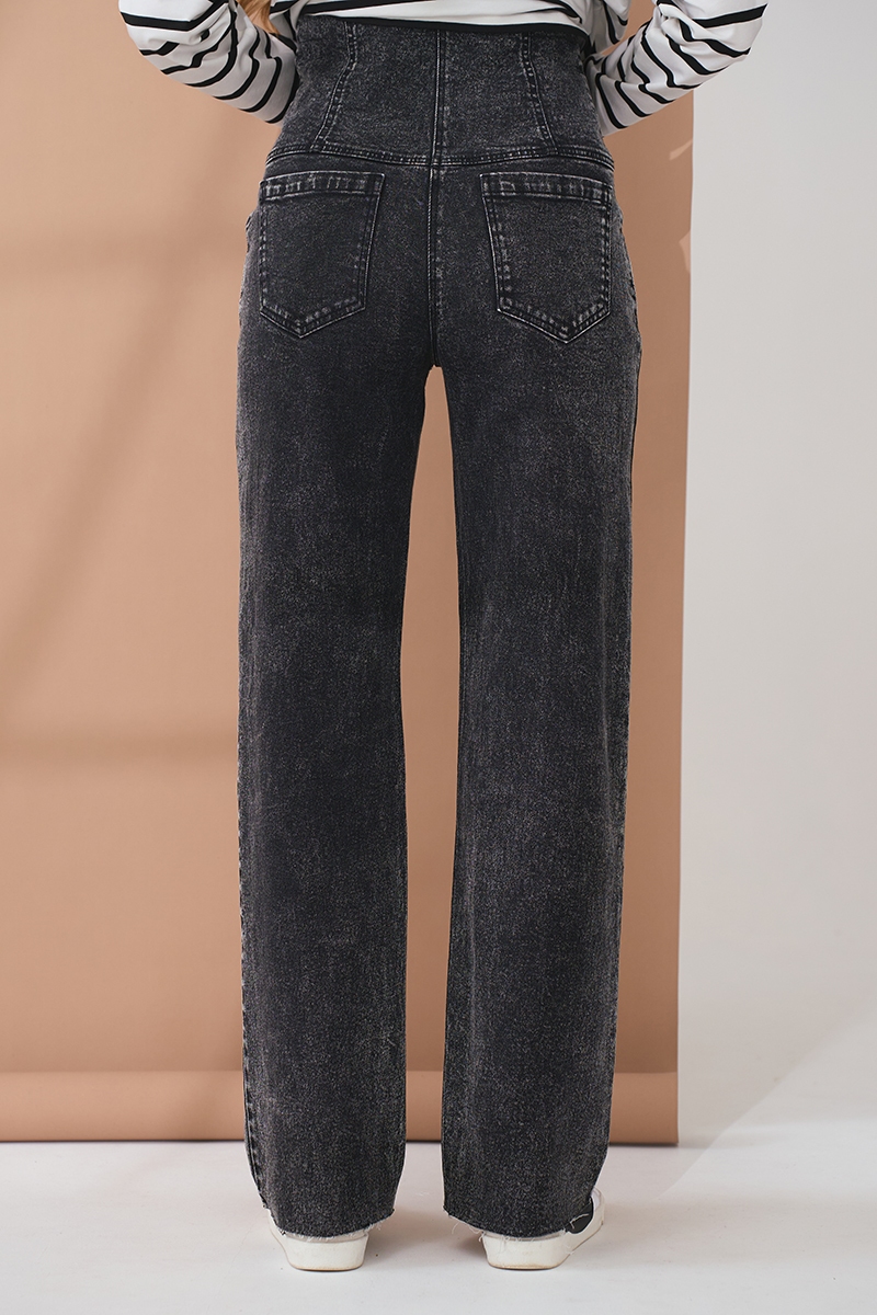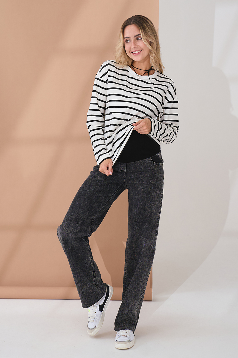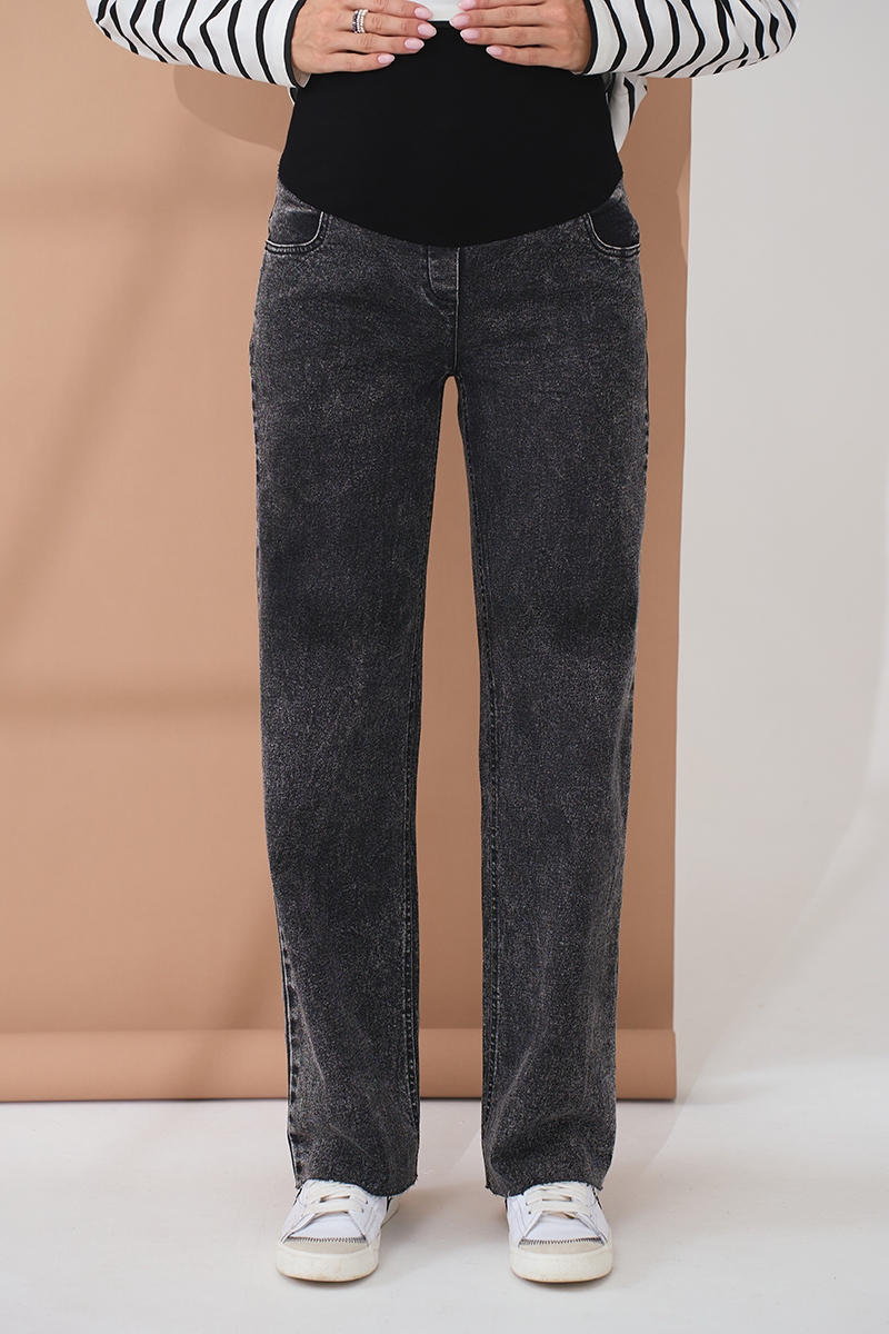 Широкі джинси для вагітних із високою спинкою та відкритим зрізом.