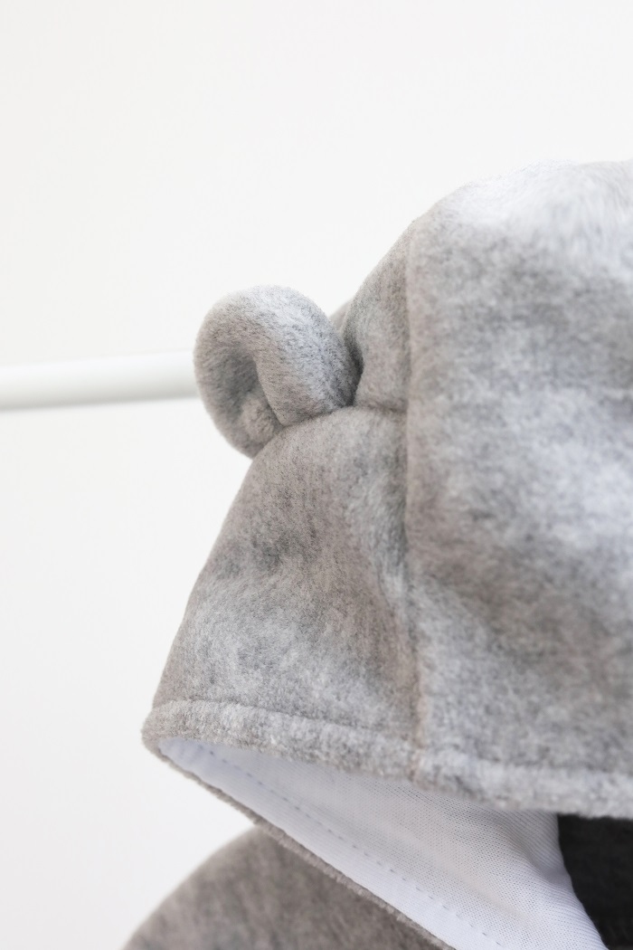 Застібка. Вона в ніжку, і вона на блискавці! А ще ж є капюшон, він чарівний. Ну майже чарівний, оскільки з вушками.
