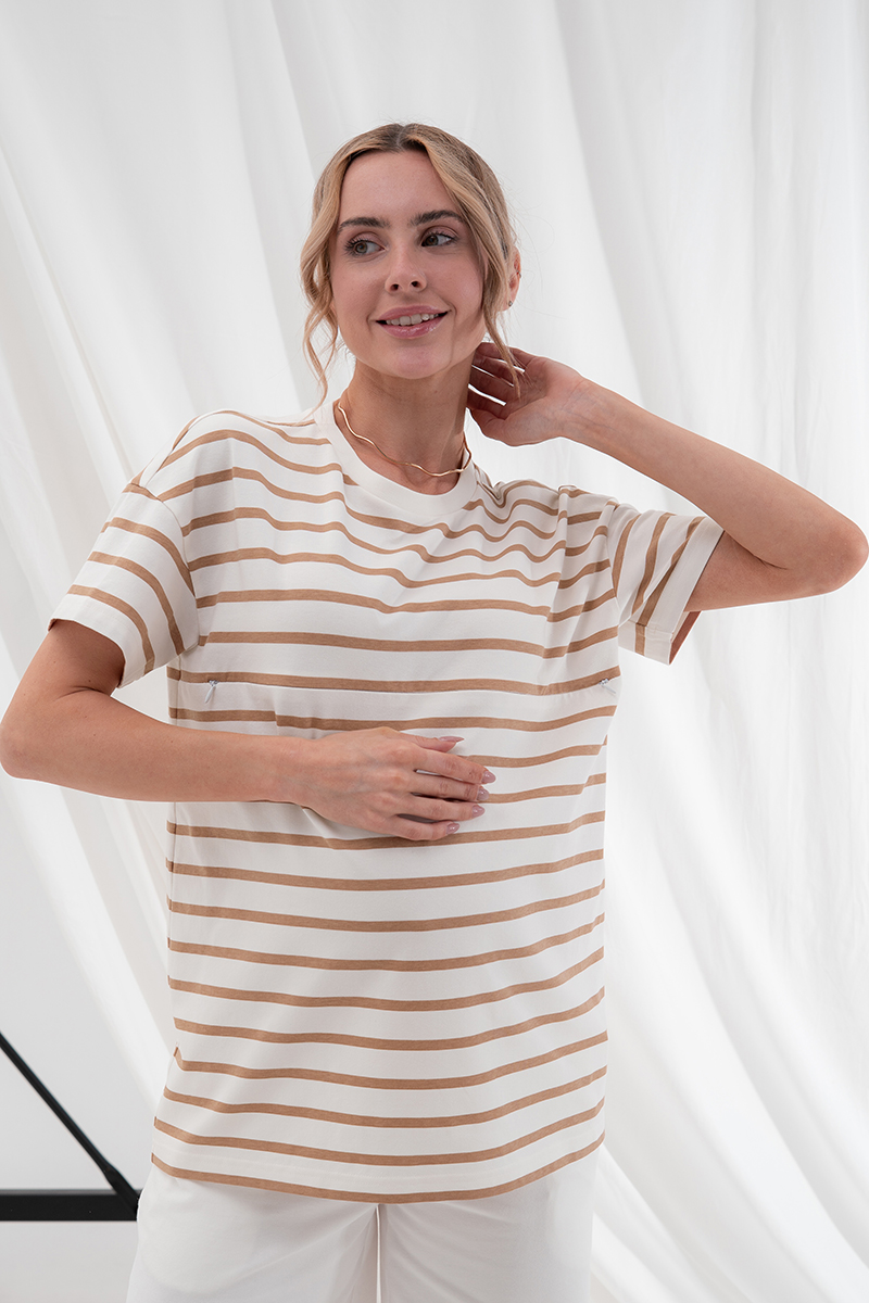 Футболка для вагітних та годуючих Kirby Бежевий Yula Mama