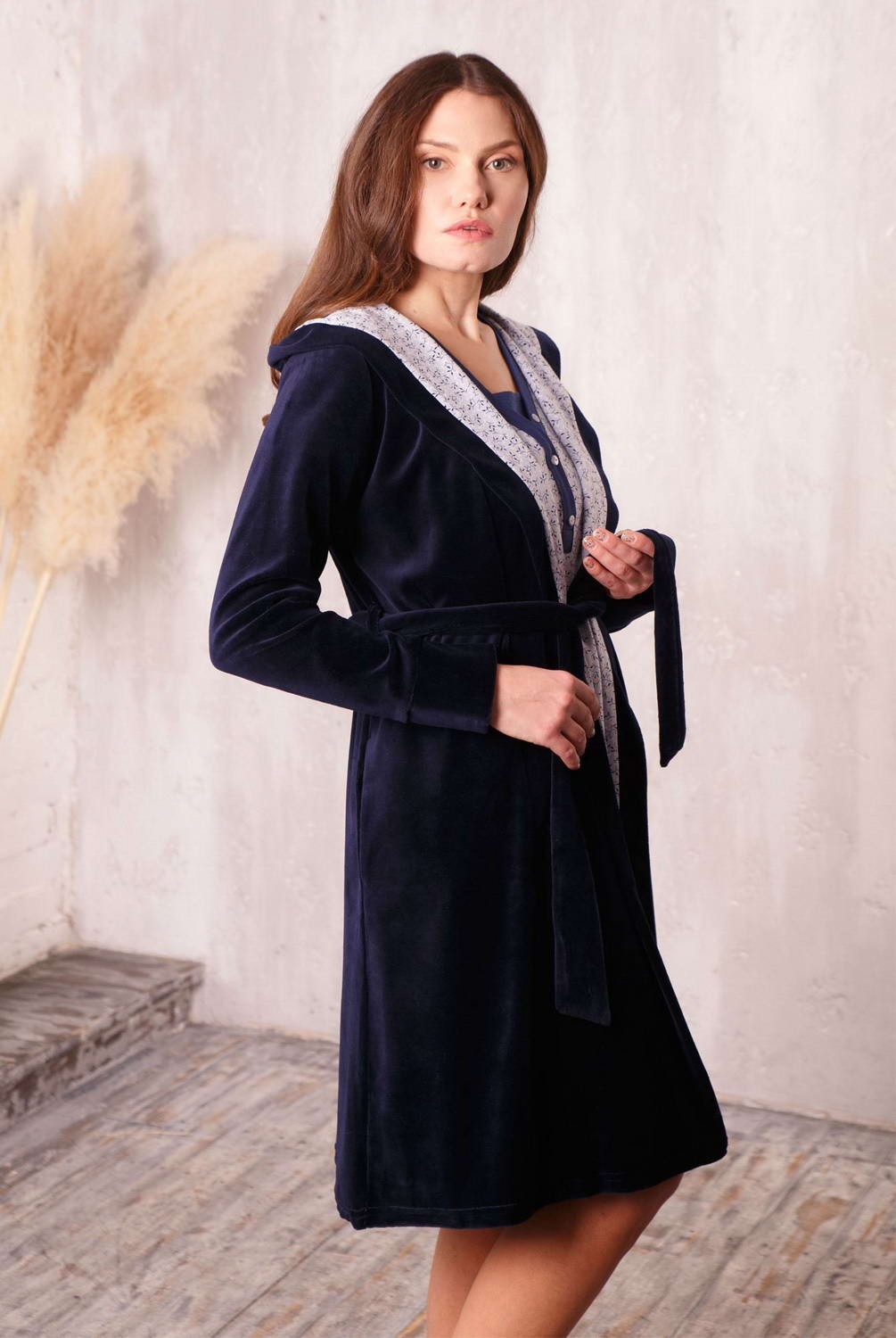 Халат Care с велюровым капюшоном темно-синего цвета для беременных и кормления. Мягкий, уютный и красивый халат поднимет настроение и согреет в прохладные дни. Этот халат послужит Вам долго, его можно использовать и в качестве обычного халата после завершения периода беременности и грудного вскармливания. К особенностям этой модели можно отнести: Модель халата на запах идеально ложится на беременный животик. Для быстрого и удобного кормления. Вся продукция сертифицирована и отвечает установленным стандартам качества.