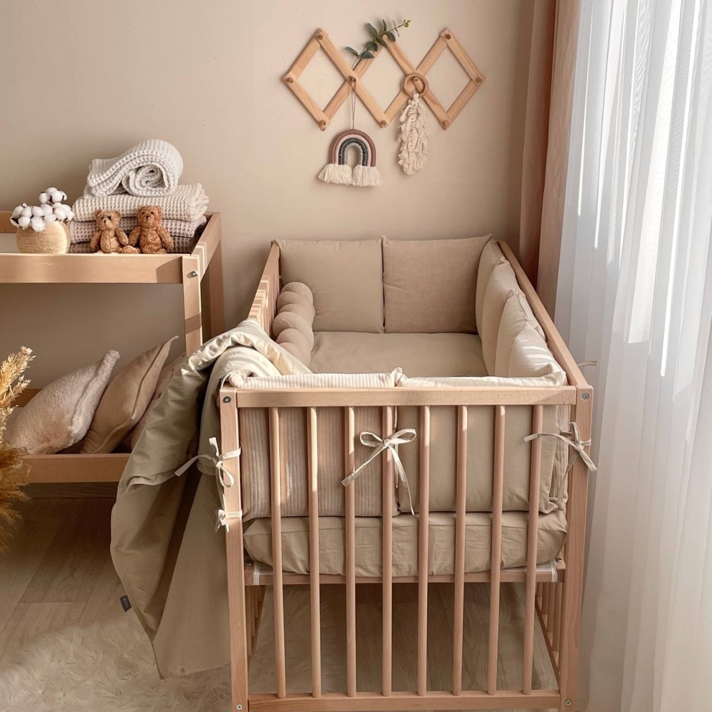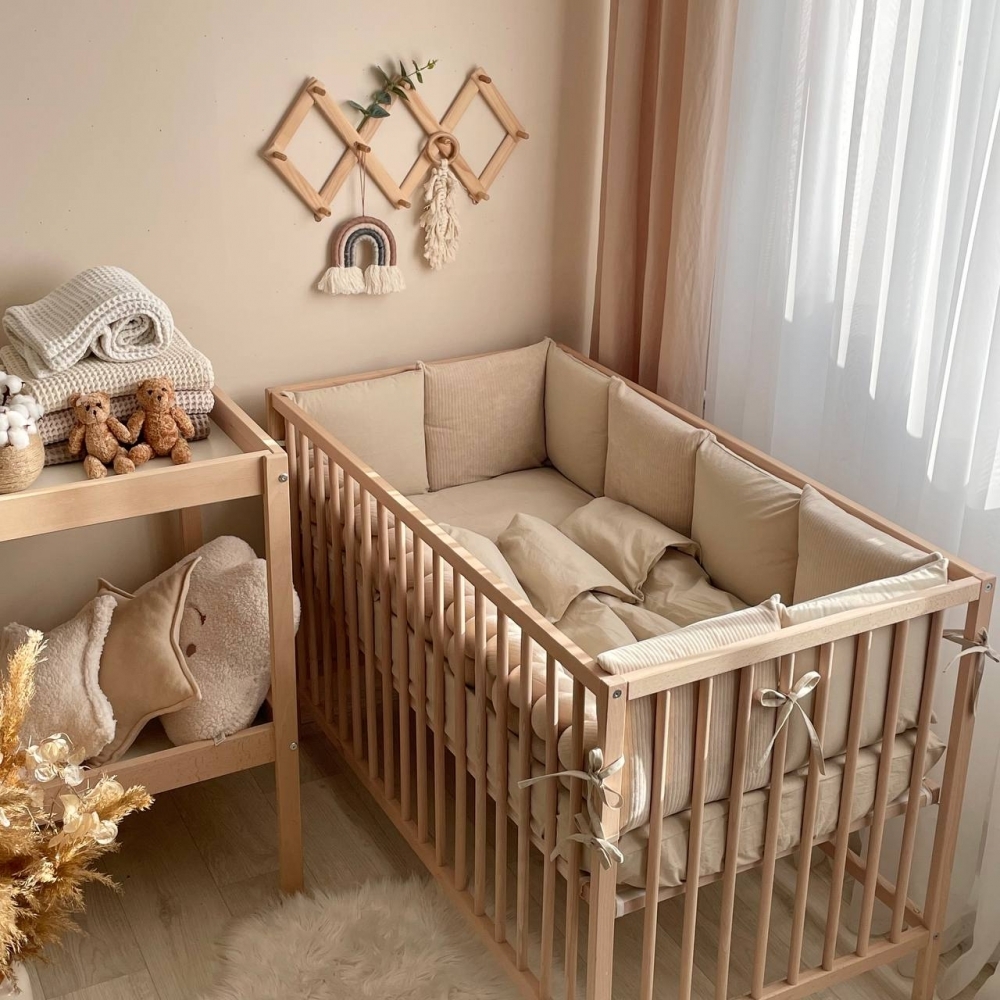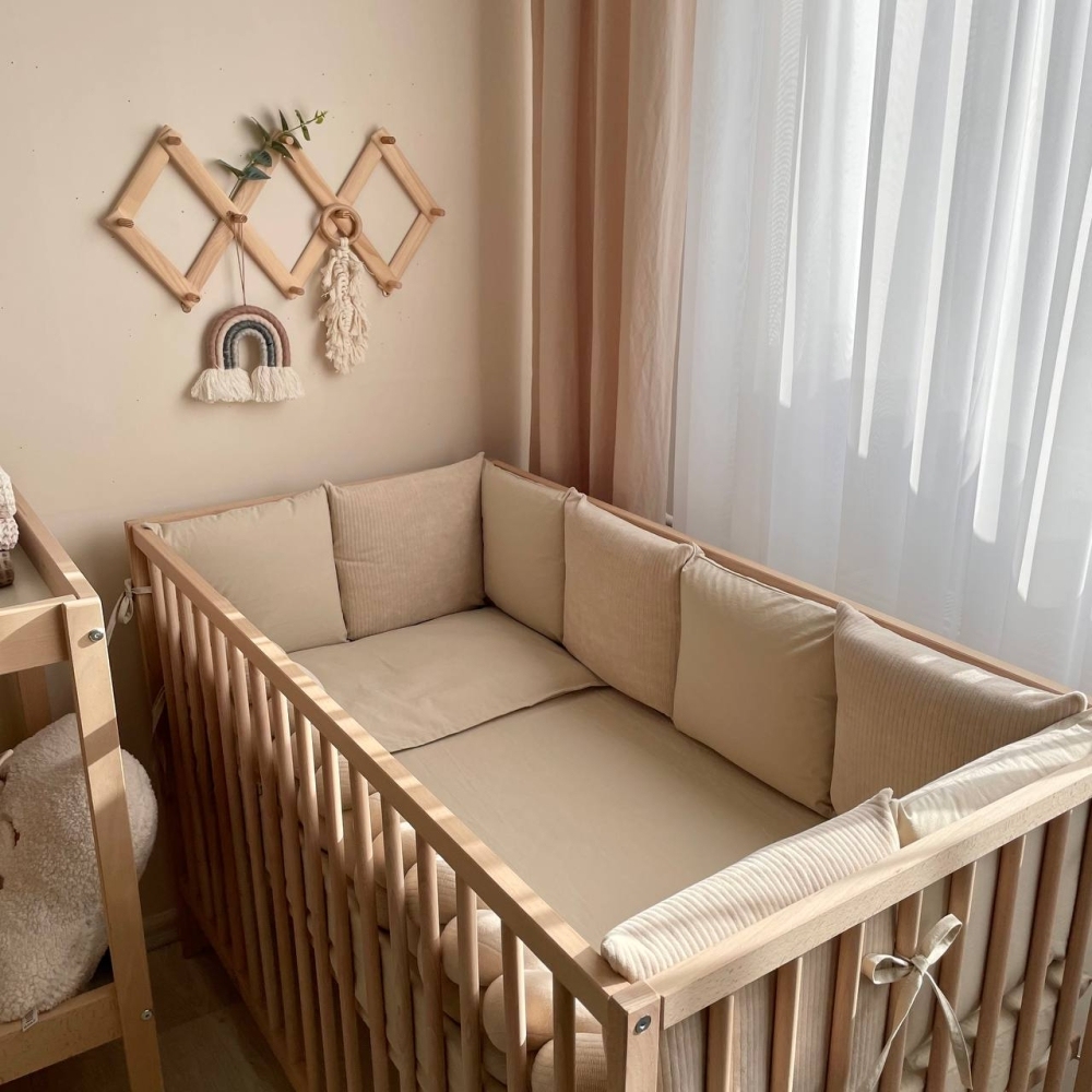 Комплект постельного белья из 6-ти предметов (бортики, одеяло, подушка, пододеяльник, наволочка, простыня), 100% хлопок.