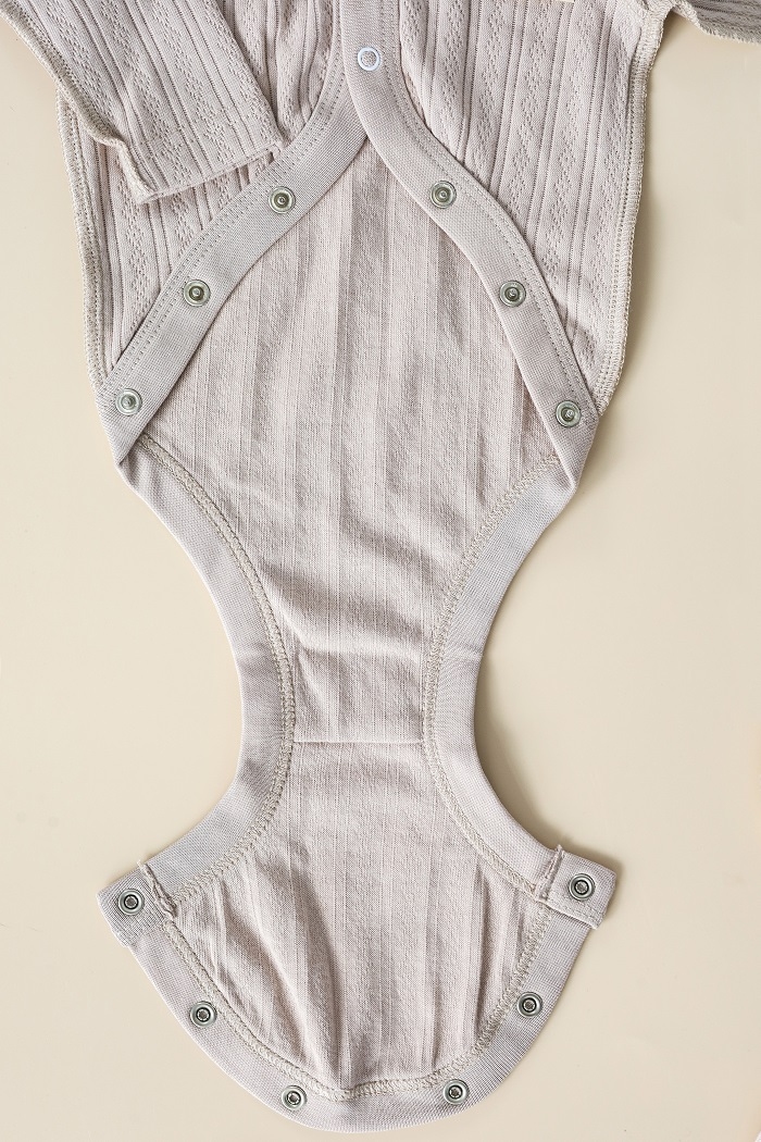Имеет конструктивно разработанный легкий доступ к пупочному ранку. Это означает, что ткань не будет мешать, а ранка будет контактировать с воздухом и быстрее заживет. Когда пупочок отпадет, вещи можно еще носить как обычные.