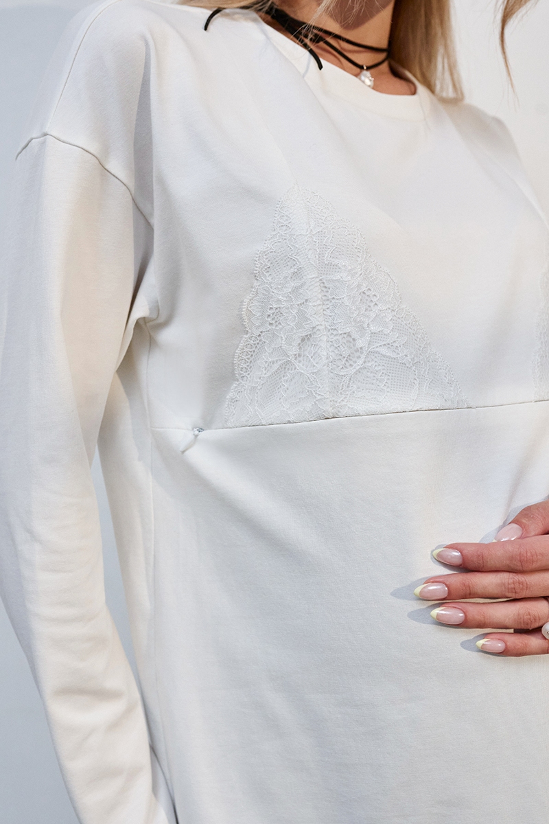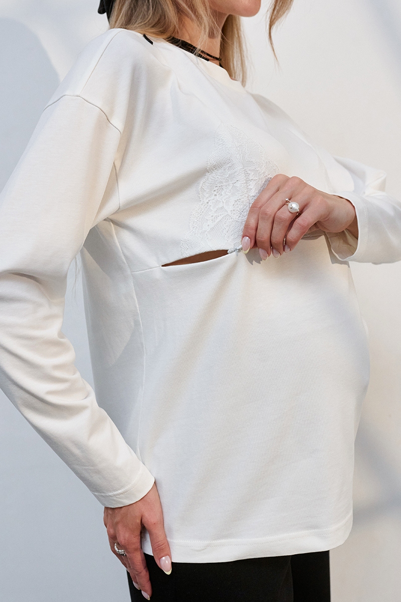 Стильный лонгслив для беременных и кормящих в бельевом стиле.