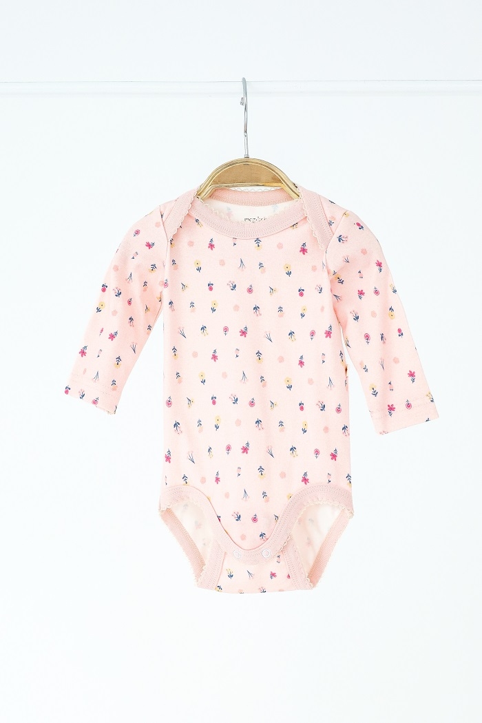 Боди с длинным рукавом – мягкий, дышащий, с нежным принтом. Боди имеет 2 ряда кнопок, что позволяет регулировать на 1 размер больше. Например, боди 62 размера таковым, если застегивать на короткий ряд кнопок. А если застегнуть на длинный ряд кнопок – трансформируется в 68 размер.