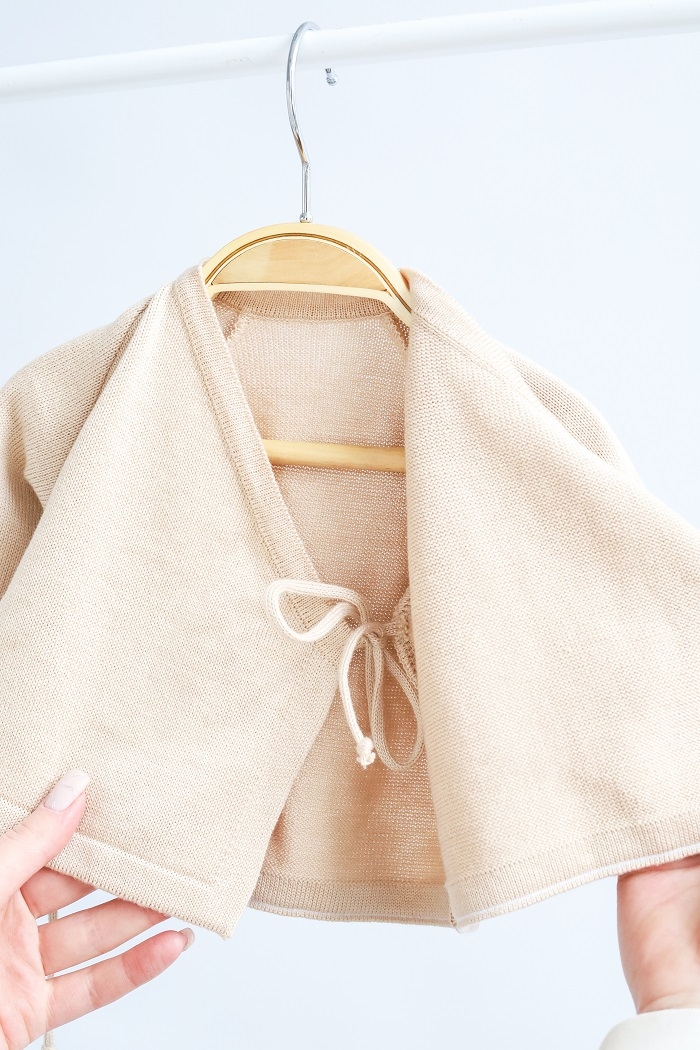 Набор вязан из нити, что очень приятно тактильно. В составе 50% хлопка и 50% акрила. Хлопок хорошо пропускает воздух и позволяет коже дышать. Акрил придает нити прочности и эластичности. Поэтому одежда сохраняет свою форму даже после многочисленной стирки.