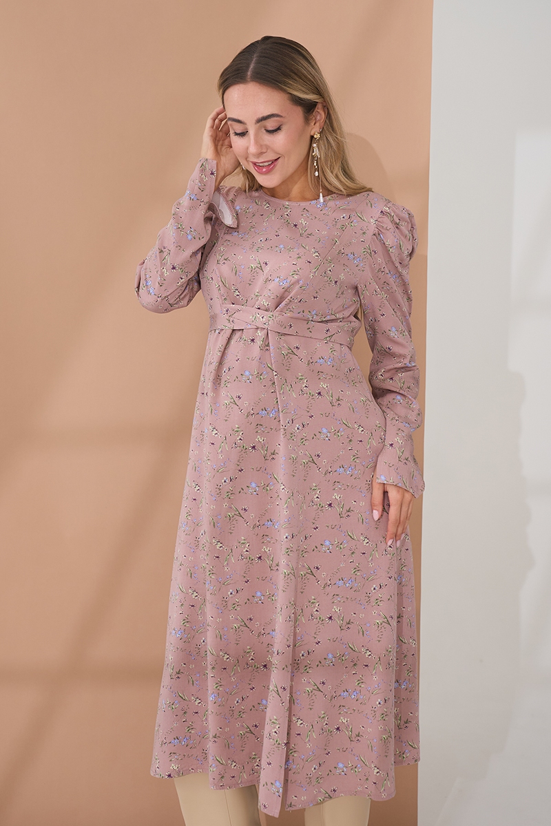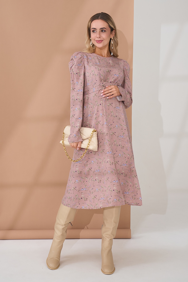 Платье для беременных и кормящих Ellender Пудра с цветами Yula Mama