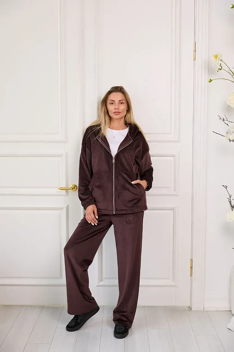 Теплый велюровый костюм для беременных и кормящих Claremont - Шоколад Lullababe