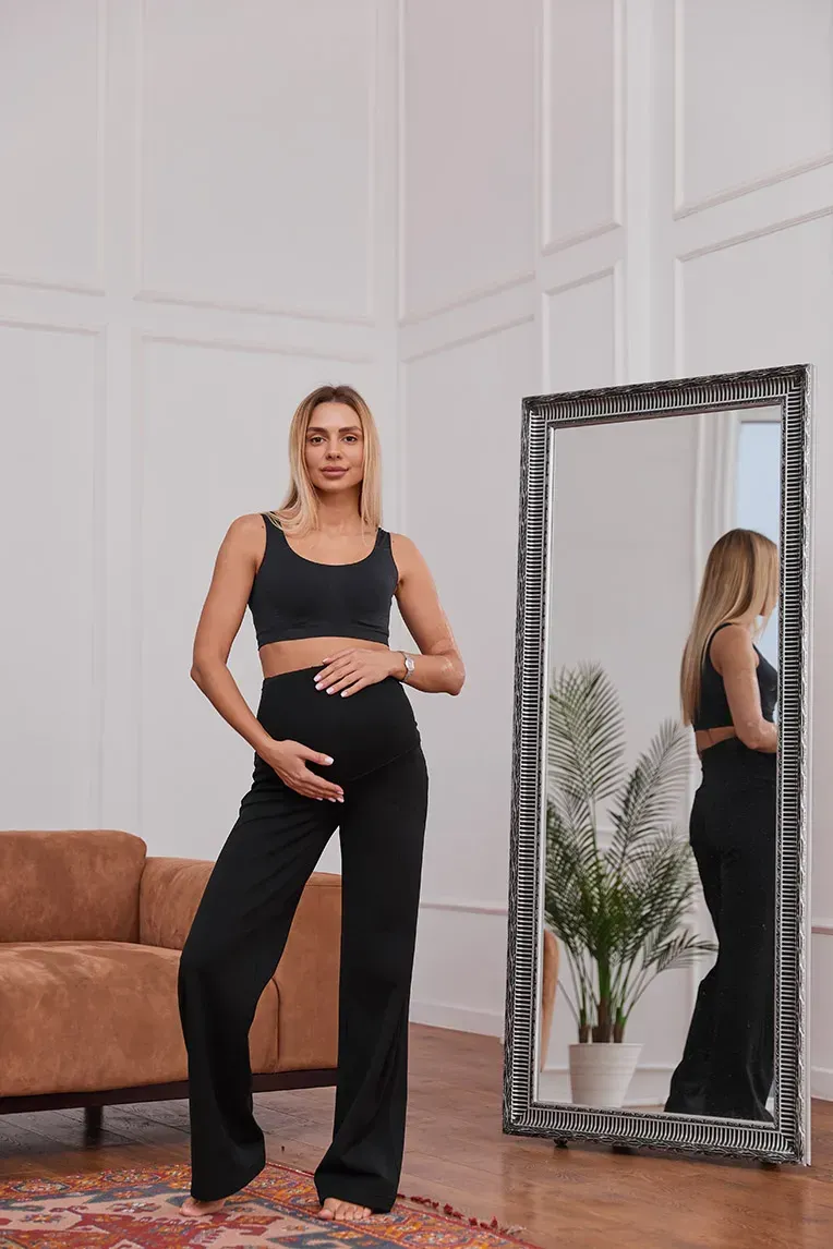 Утепленные брюки в рубчик для беременных Foggia - Черный Lullababe