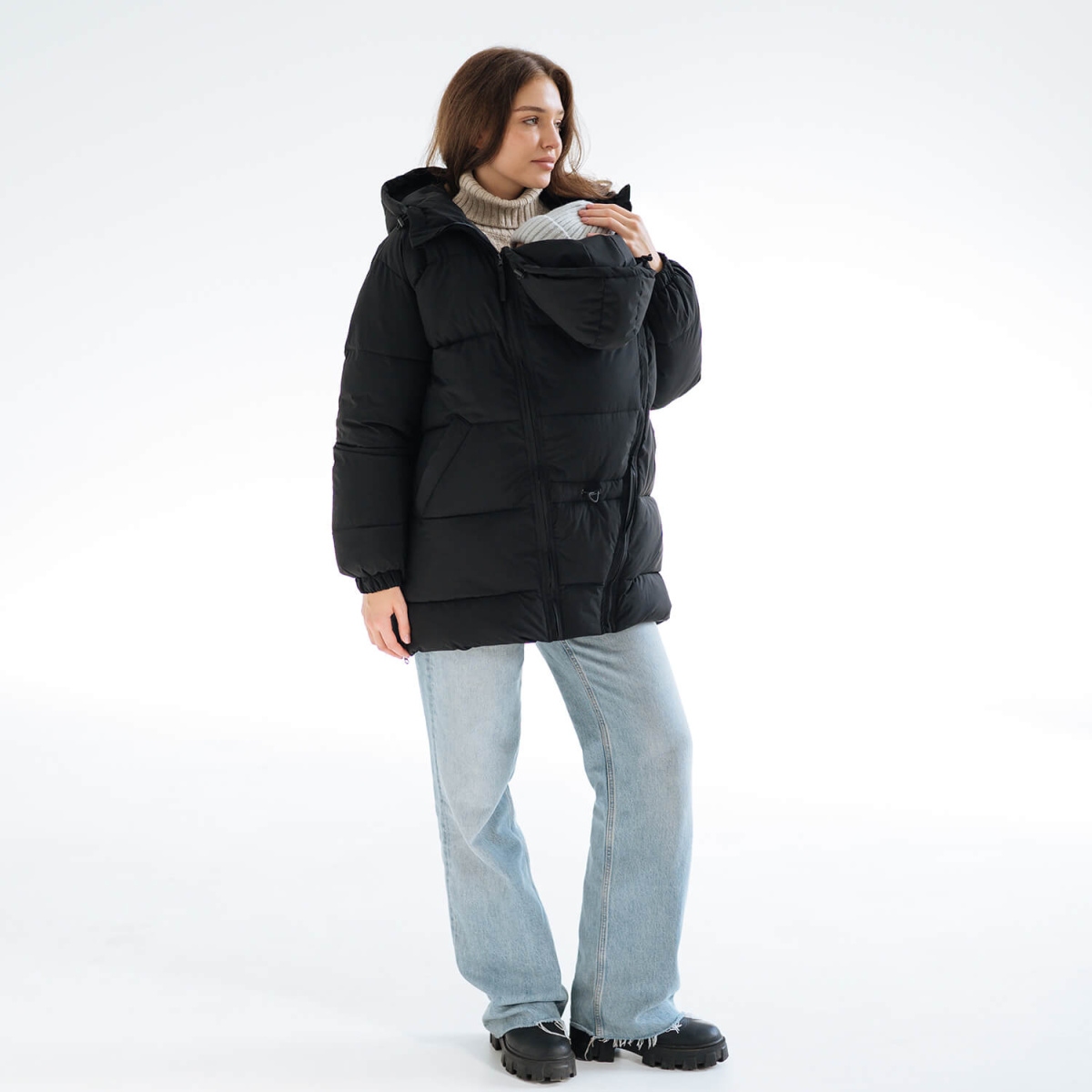 Слингокуртка может быть одета на любую физиологическую переноску: слинг или эрго-рюкзак