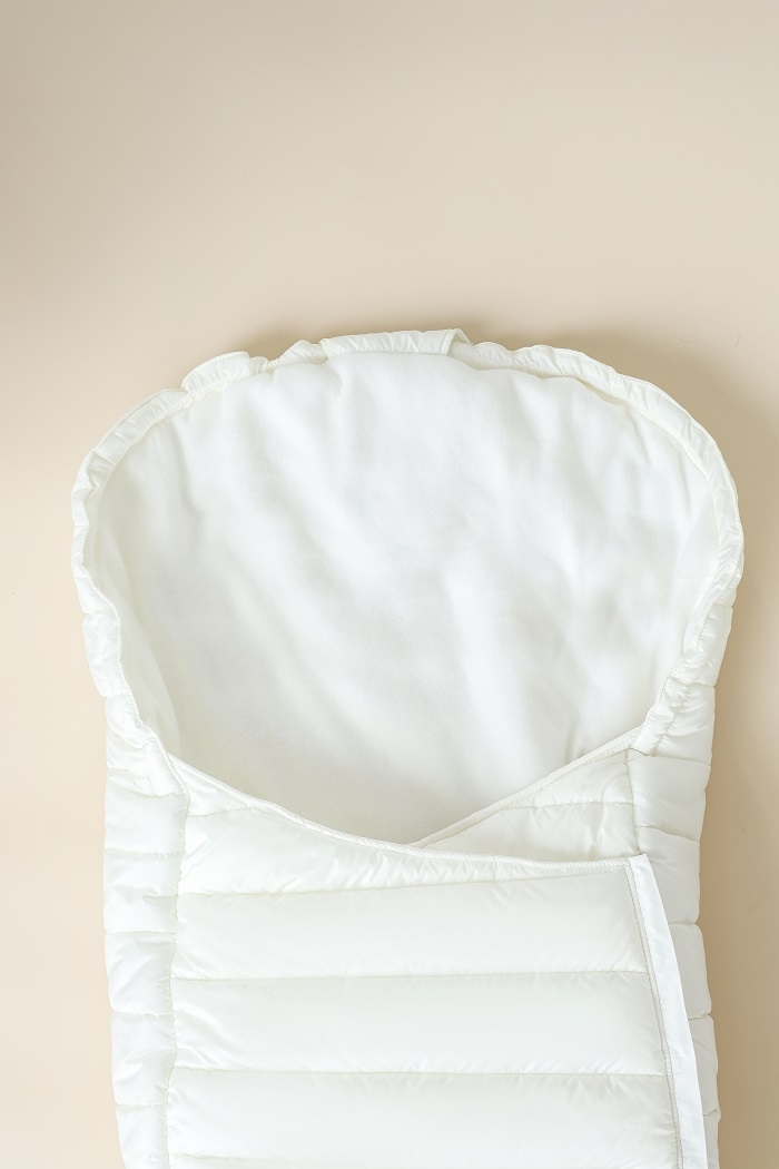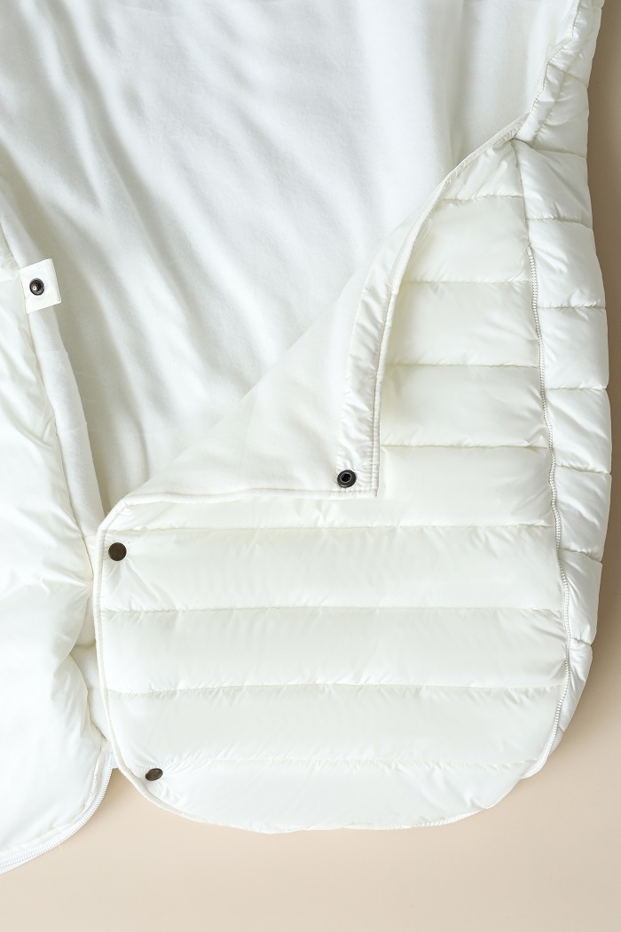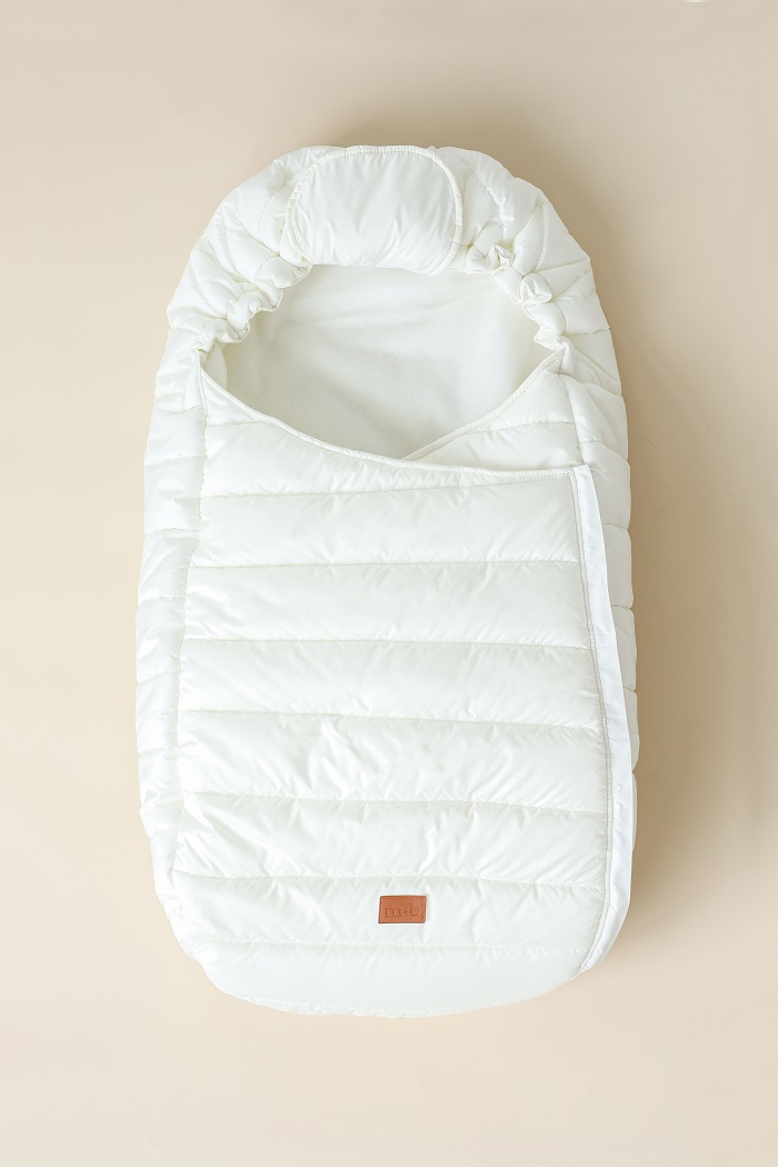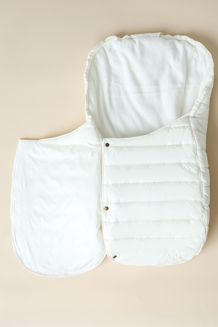 Уютное гнездышко для зимних прогулок. Надежно защищает от ветра, холода и влаги, в то же время дарит малышу комфорт. Снаружи пошит из плотной плащевки, которая не боится ветра или мокрого снега. Внутри – мягкий флис, приятный к телу. Утеплен лебединым биопухом. Это современный утеплитель: легкий, тёплый и совсем не громоздкий.