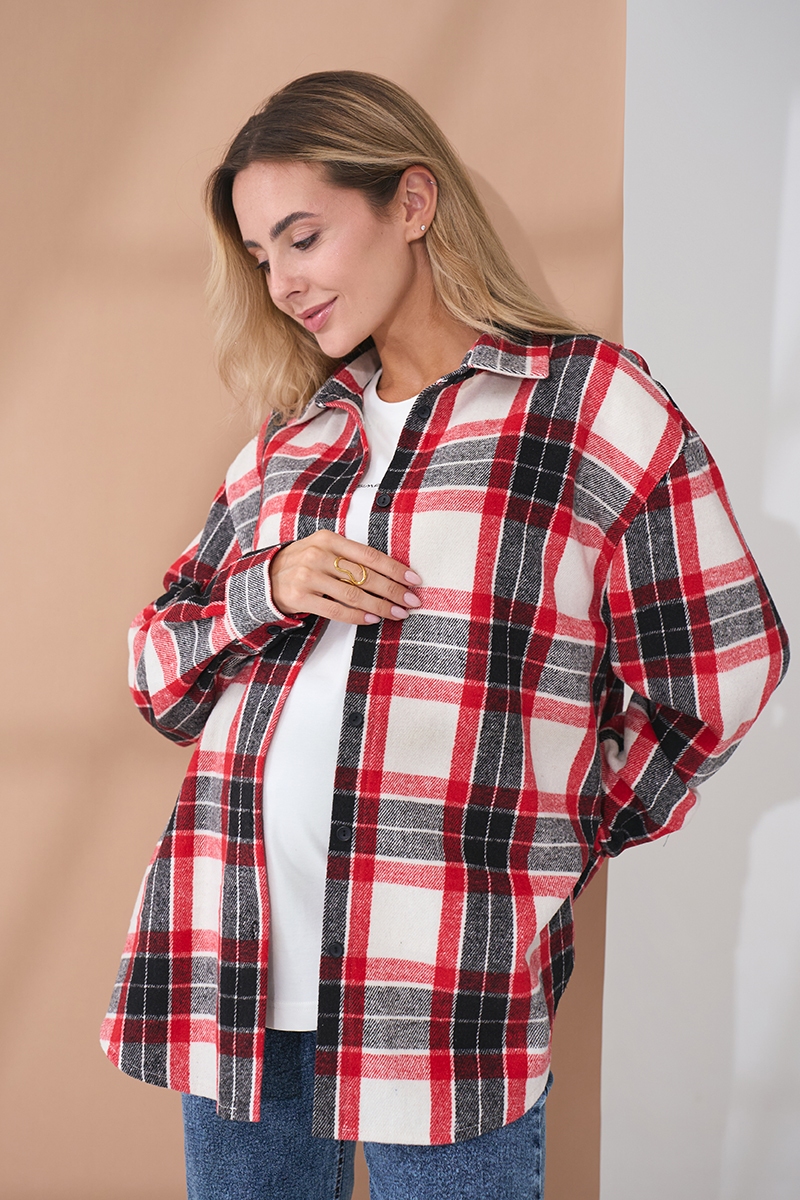 Картата сорочка з теплої тканини для вагітних та годуючих.